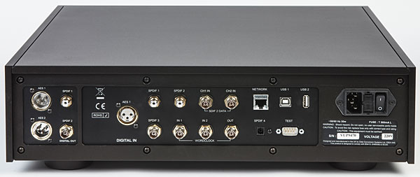 Een reeks onafhankelijk selecteerbare digitale ingangen (RJ45, USB, AES, S/PDIF, SDIF-2, TOSLINK) maakt de veelzijdigheid van deze krachtige machine compleet en verhoogt de prestaties van Red Book CD van cd-spelers of audio met hoge resolutie van digitale streamers naar een voorheen onovertroffen niveau.