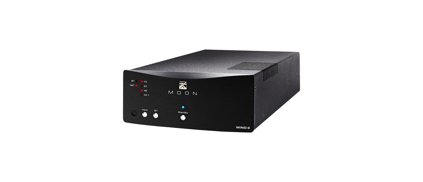 Moon MiND, Moon intelligent Network Device, streamt muziek vanaf een computer of NAS in een netwerk, digitale resolutie to 24 bit/192kHz. Deze Streaming audio speler heeft alleen een digitale uitgang en moet dus worden aangesloten op een digitale ingang van een DAC of versterker met ingebouwde DAC. De Moon Mind kan met een goed werkende iOS en Android app bediend worden. De ideale oplossing voor een ieder die al een goede DAC in gebruik heeft en bestanden vanaf een NAS of met via een streamingdienst in hoge kwaliteit wil gaan afspelen.